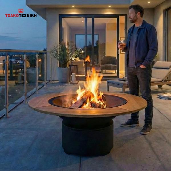 Εξωτερικό Τζάκι: Το ιδανικό ύψος για να νιώθετε τη ζεστασιά της φωτιάς σε όλο σας το σώμα. Δημιουργεί την ατμόσφαιρα ενός πολυτελούς ξενοδοχείου στην αυλή σας.
