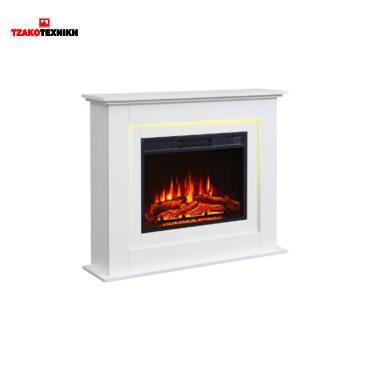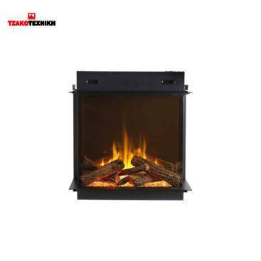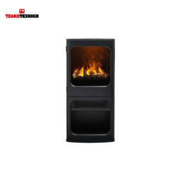 Επιδαπέδιο ηλεκτρικό τζάκι σε σχέδιο κλασικής σόμπας, με μαύρο μεταλλικό πλαίσιο, απομίμηση ξύλων, ανοιγόμενη μπροστινή πόρτα και inox λεπτομέρειες. Ο ζεστός αέρας εξέρχεται από το κάτω μέρος της μονάδας και θερμαίνει το χώρο σας, ενώ η εικονική φλόγα, τεχνολογίας Optiflame®, και τα ρεαλιστικά κούτσουρα με εσωτερικό φωτισμό που τρεμοπαίζει, διακρίνονται πίσω από το τζάμι της πόρτας, συνδυάζοντας την παραδοσιακή εμφάνιση με την σύγχρονη τεχνολογία για τη δημιουργία μιας ζεστής ατμόσφαιρας στο χώρο σας. Οι διαστάσεις του επιτρέπουν την τοποθέτηση ακόμα και σε δωμάτια μικρού μεγέθους. Διαθέτει θερμοστάτη και τηλεχειριστήριο.