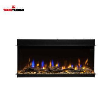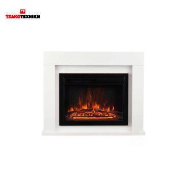 - Το τζάκι διαθέτει ρεαλιστική απομίμηση ξύλων και γυάλινη πρόσοψη.