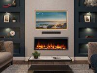 - Electric fireplace insert for built-in installation (e.g., drywall) or freestanding wall placement.