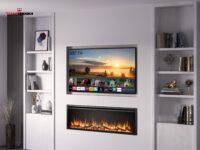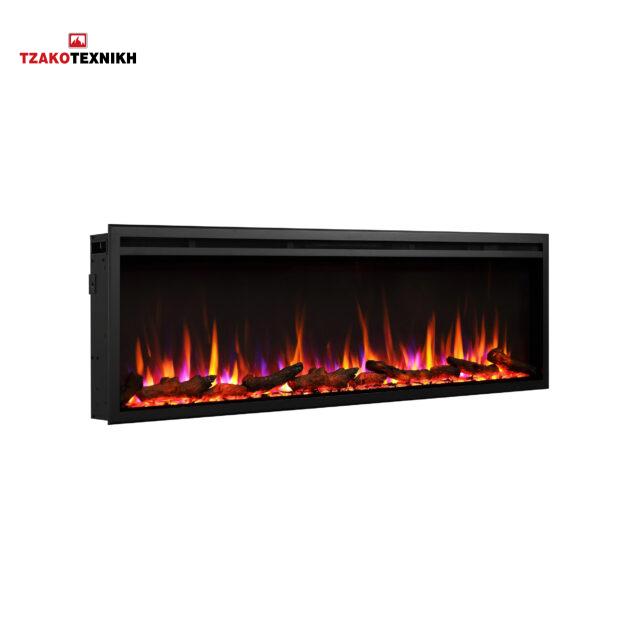 The Insert 152 electric fireplace is technologically the most advanced series, featuring a realistic 3D flame representation, atmospheric LED lighting with countless options for every mood, and immediate heating whenever needed. It can be installed as an insert in a construction or mounted on the wall. It includes unique resin logs, ash, charcoal, and crystals for customizable decoration. Combining cutting-edge technologies with WiFi connectivity, control via a mobile application (for IOS & Android smartphones), multiple lighting options, and adjustments for 2 types of flames, hearth effects, additional lower part lighting (RGB LED). The heating function is equipped with a precision electronic thermostat, digital temperature indicators, open window detection, adaptive startup, safety features, and a timer. Additionally, the slim frame of the device and the very large clear screen add a distinctive design and aesthetic to any space.