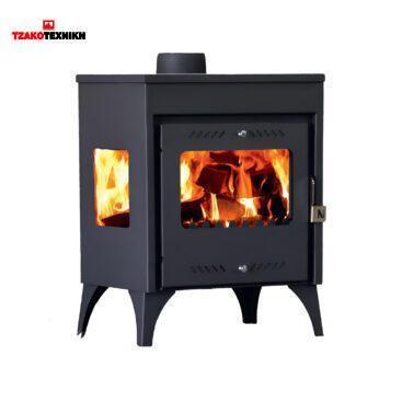 Steel wood stove with cooking oven, featuring internal firebrick lining for maximum durability and heat efficiency in the space.